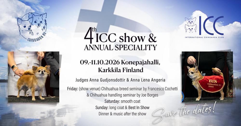 Laita päivämäärä jo kalenteriisi! Seuraava Chihuahua ry:n erikoisnäyttely on samalla kansainvälisen chihuahuayhdistyksen ICC:n erikoisnäyttely. Siitä tulee jotain, jonne kaikkien rotua rakastavien…