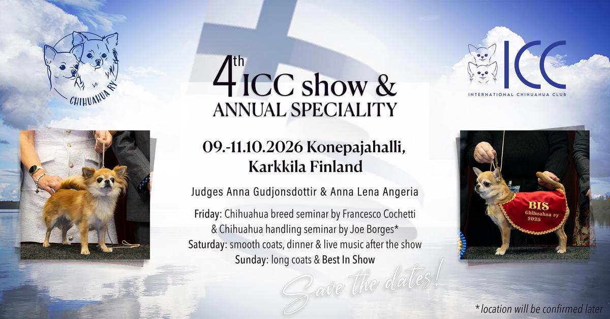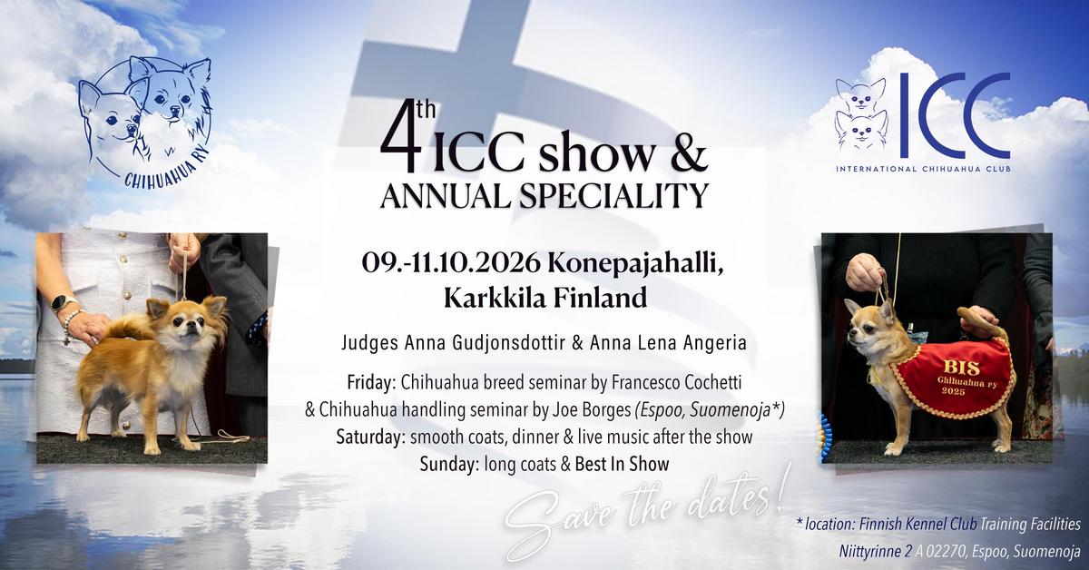 Friday: Chihuahua breed seminar by Francesco Cochetti & Chihuahua handling seminar by Joe Borges (lEspoo, Suomenoja).