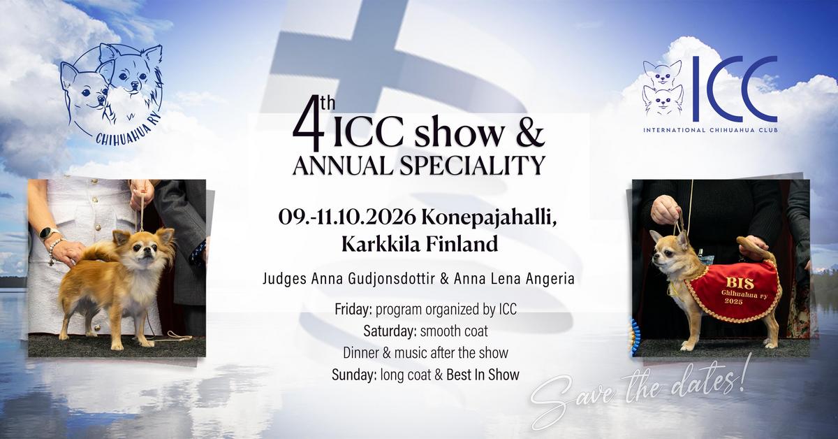 Seuraava Chihuahua ry:n erikoisnäyttely on samalla kansainvälisen chihuahuayhdistyksen ICC:n erikoisnäyttely. Siitä tulee jotain, jonne kaikkien rotua rakastavien vain täytyy päästä: upea tapahtuma ainutlaatuisessa vanhassa tehdasrakennuksessa, joka luo meille mahtavat puitteet. Näyttelyssä arvostelevat rotuspesialistit ja osallistujissa tulee olemaan rodun hienoimpia edustajia, puhumattakaan mahdollisuudesta tavata muita rodun harrastajia näyttelyn illanvietossa. Pidä silmällä tiedotustamme tulevina kuukausina ja varaudu jo matkustamaan Karkkilaan!
